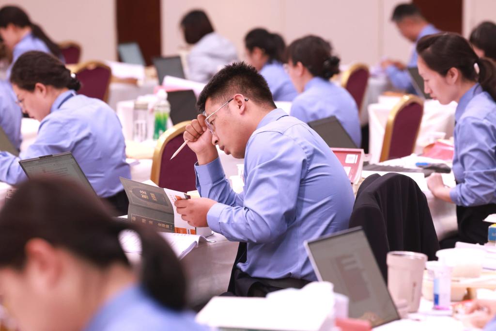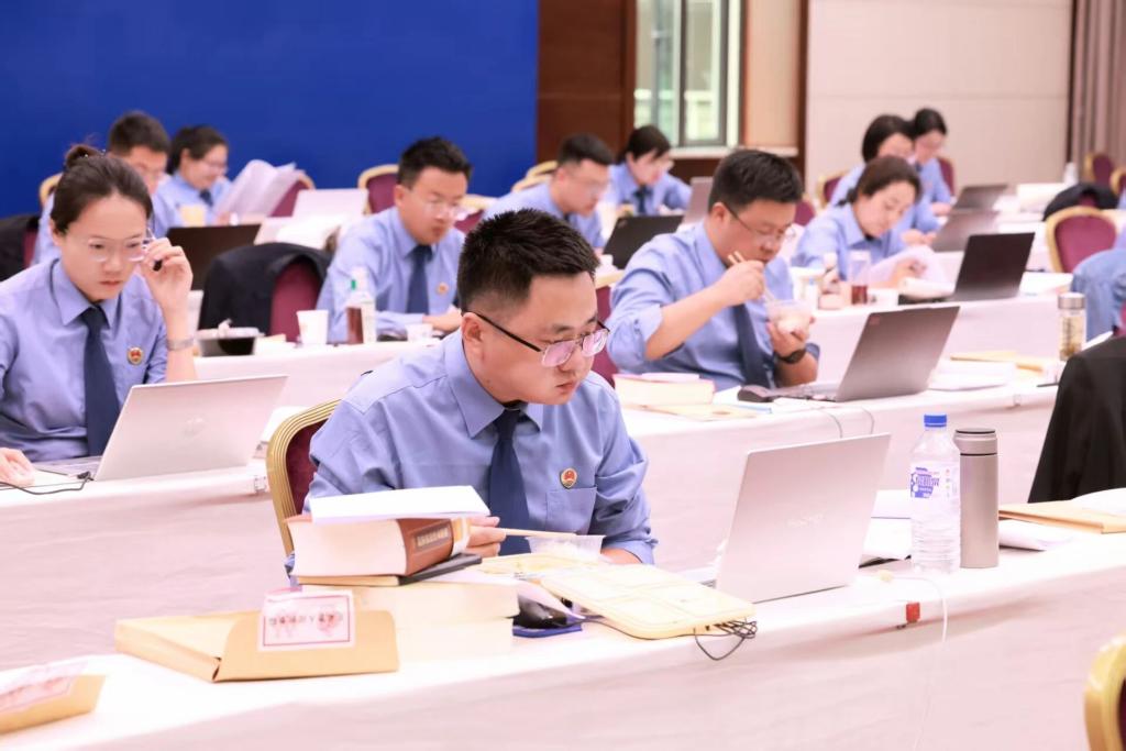 清晨7时许,兰州秋意微凉。参赛选手陆续抵达考场后,或闭目凝神,或轻声交流,或反复检查资料。考场内,笔记本电脑整齐排列,法律法规、参考书籍堆叠有序,空气中弥漫着紧张而又庄重的气氛。8时整,考试正式开始。选手们迅速进入状态,瞬间考场内键盘敲击声、书页翻动声、笔尖沙沙声此起彼伏。一名来自庆阳的选手在休息间隙表示,“本来非常紧张,手心都出汗了,可打开试卷一看‘包不同伙同白世镜’一下给我整乐了,谢谢出题老师,您费心了”。