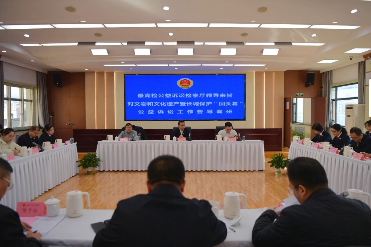 实地调研结束后,调研组在兰州市安宁区检察院召开座谈会,听取省检察院关于全省文物和文化遗产保护公益诉讼工作,特别是长城保护“回头看”专项行动的专题汇报。省文物局介绍了全省长城资源的总体概况、价值特征、保护管理现状及面临的主要挑战,和与检察机关建立协作机制后,在联合巡查、线索移送、专业支持等方面形成保护合力,对于文物和文化保护的重要推动作用,并对进一步深化“行政+司法”协同模式提出建议。