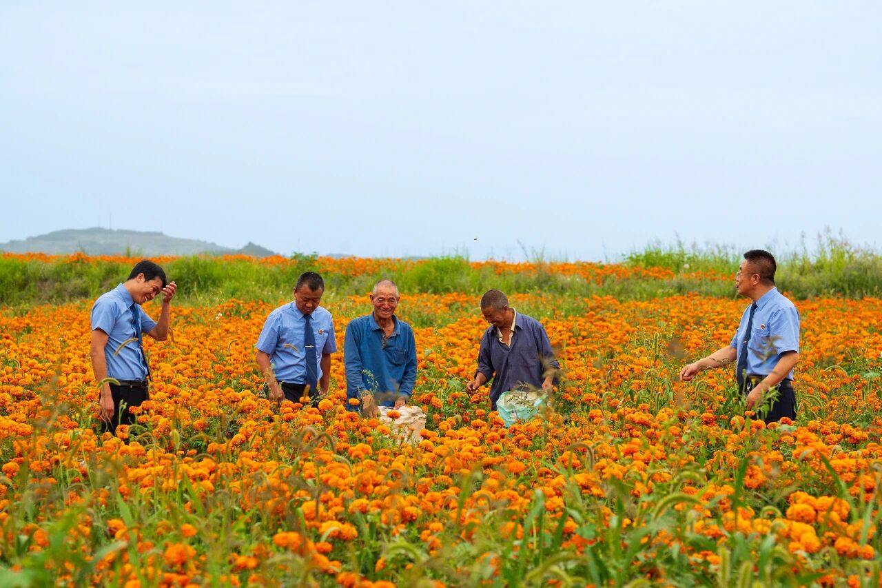 2023年8月17日,清水县检察院干警在红堡镇新坪村了解万寿菊采摘情况,并通过开展志愿服务、普法宣讲等方式为助力乡村全面振兴贡献检察力量。
