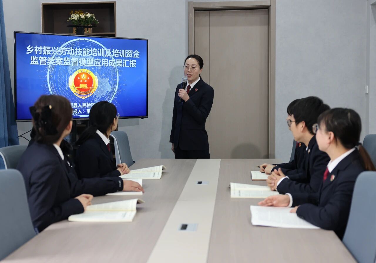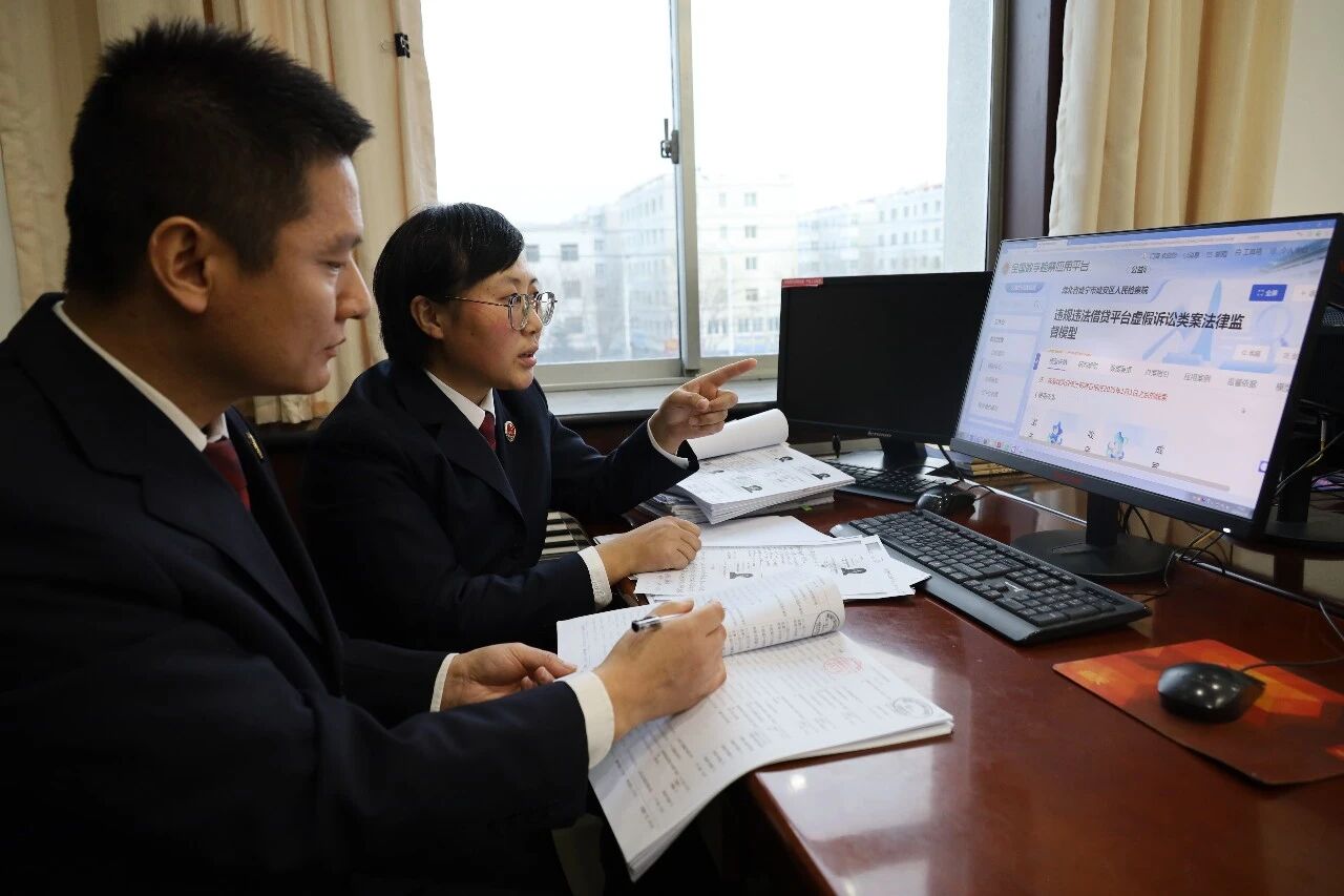 2025年3月24日,静宁县检察院检察官讨论应用职业放贷人类案监督大数据模型。