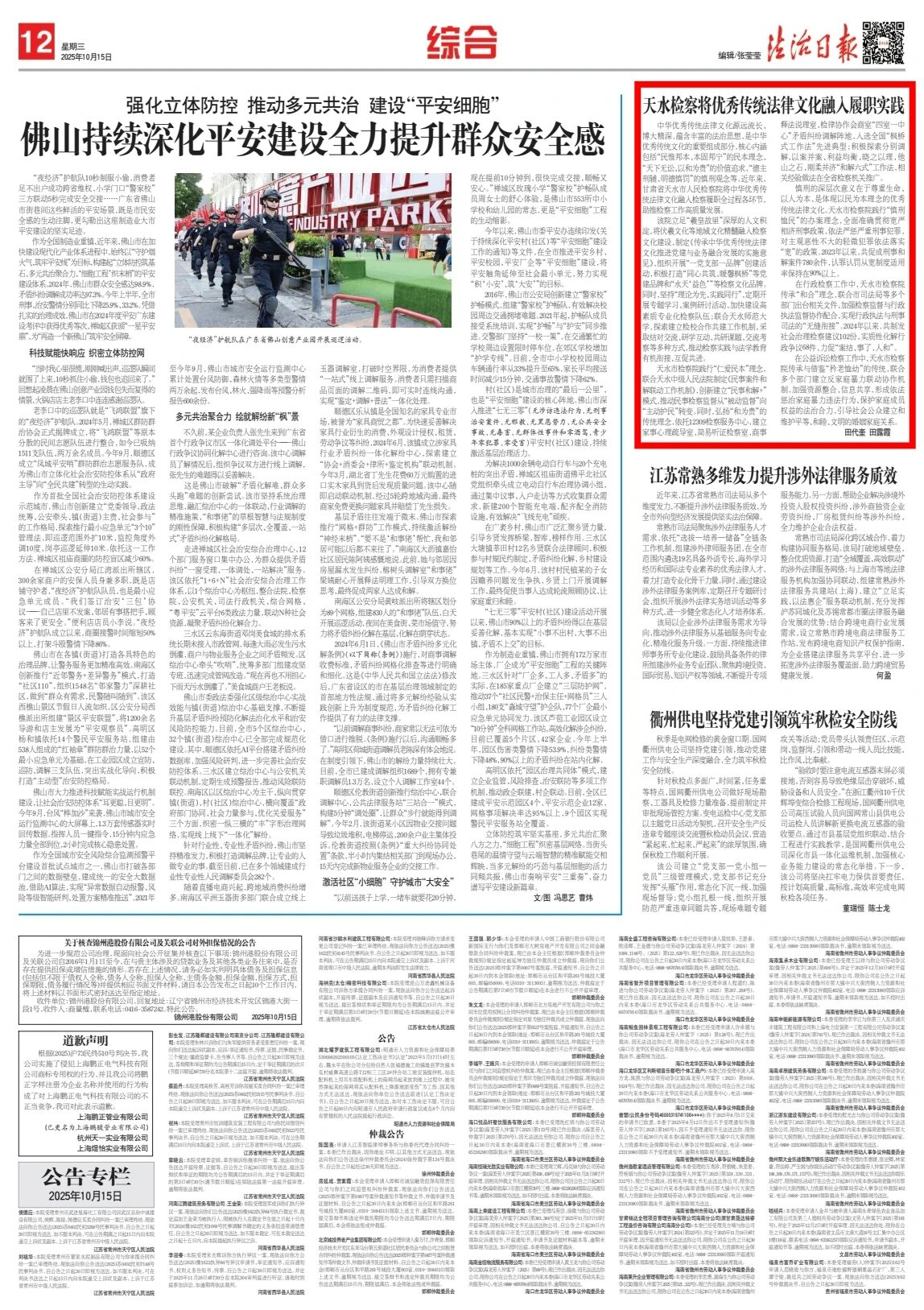 2025年10月15日,法治日报刊发《天水检察将优秀传统法律文化融入履职实践》。