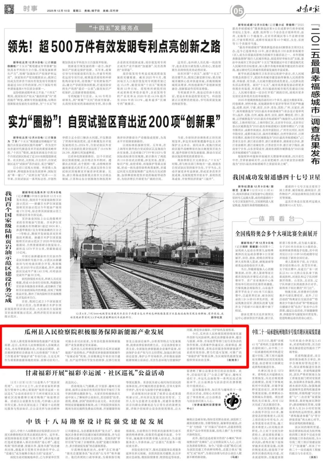 2025年12月10日,甘肃日报刊发《瓜州县人民检察院积极服务保障新能源产业发展》。