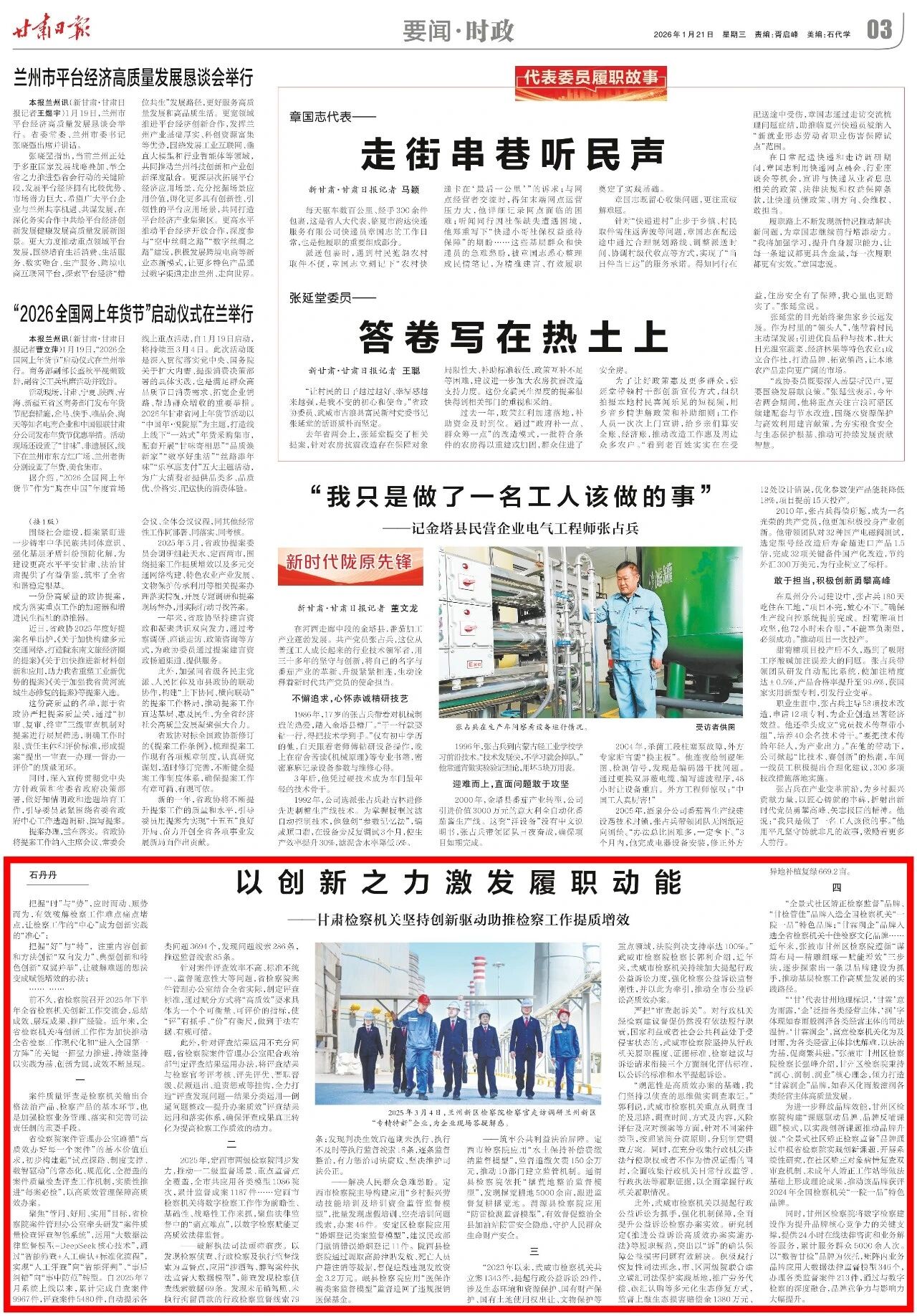 2026年1月21日,甘肃日报刊发《以创新之力激发履职动能——甘肃检察机关坚持创新驱动助推检察工作提质增效》。