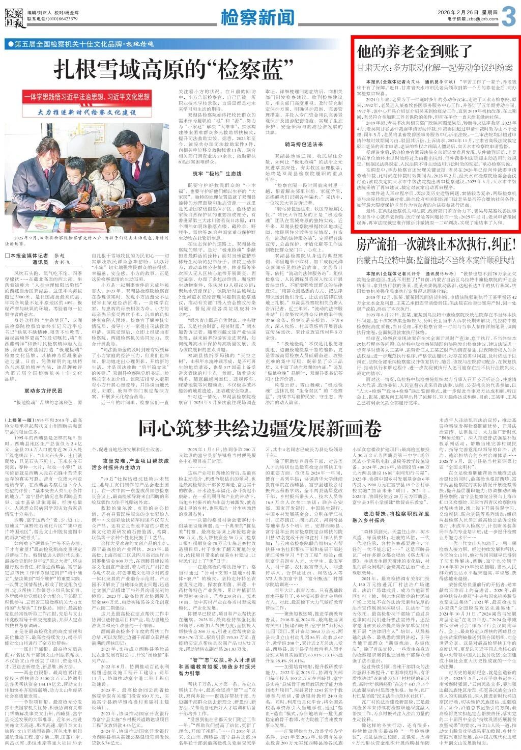 2026年2月26日,检察日报刊发《他的养老金到账了 甘肃天水:多方联动化解一起劳动争议纠纷案》。