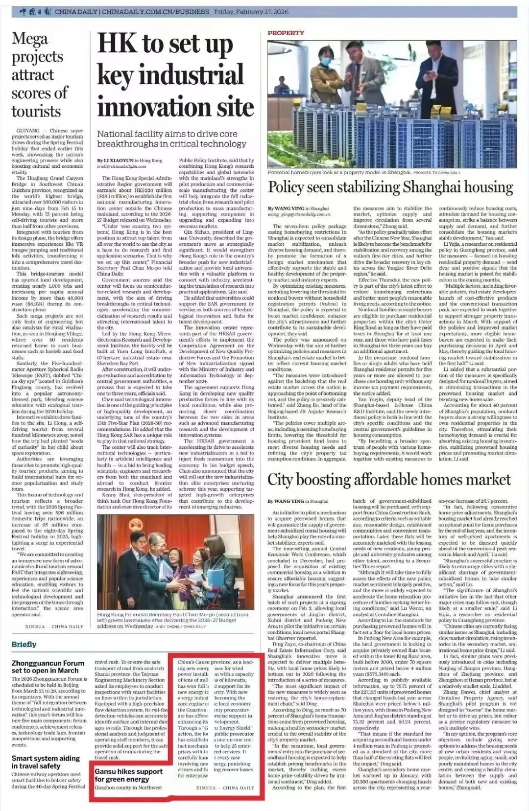 2026年2月27日,中国日报刊发《甘肃瓜州:检察助力绿色能源发展》。