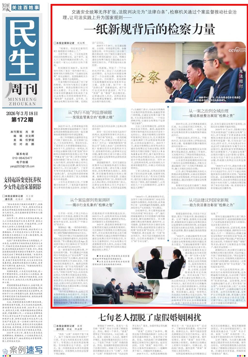 2026年3月18日,检察日报民生周刊刊发《一纸新规背后的检察力量》。