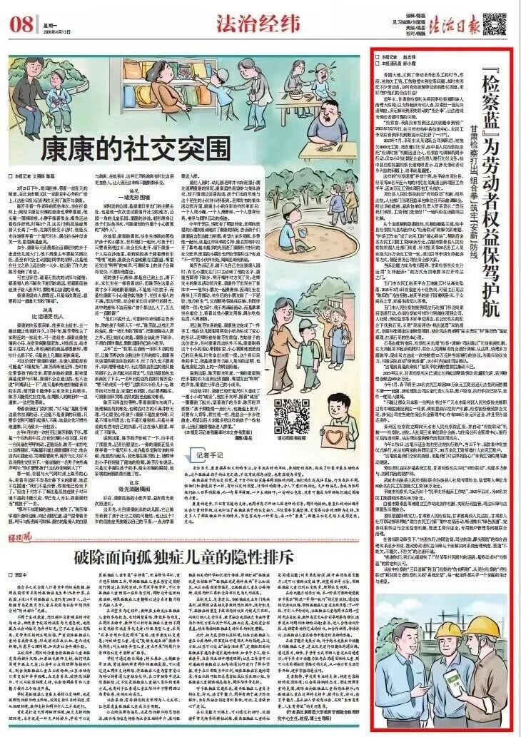 2026年4月13日,法治日报刊发《“检察蓝”为劳动者权益保驾护航 甘肃检察打出“组合拳”筑牢“安薪”防线》。