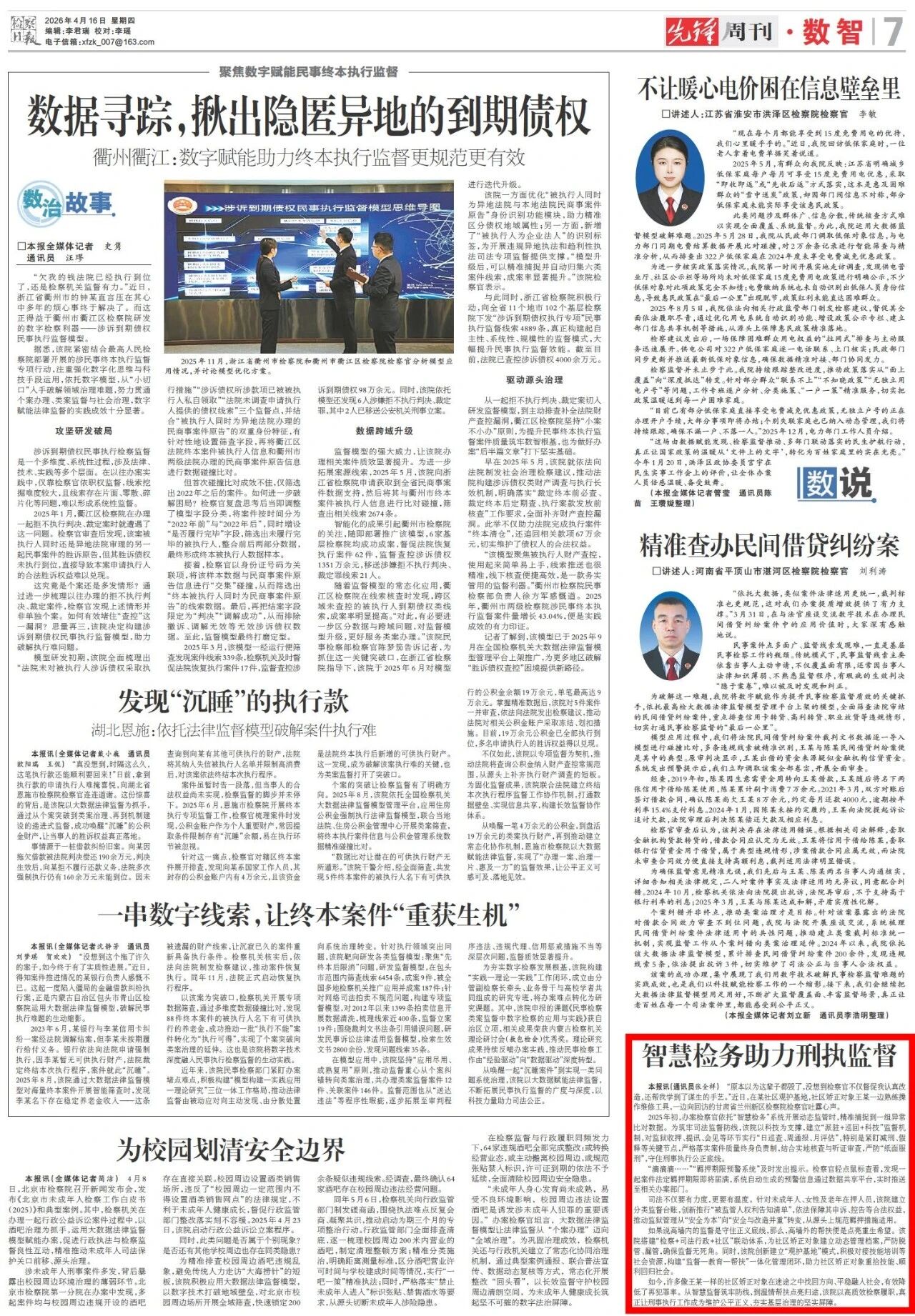 2026年4月16日,检察日报先锋周刊刊发《智慧检务助力刑执监督》。