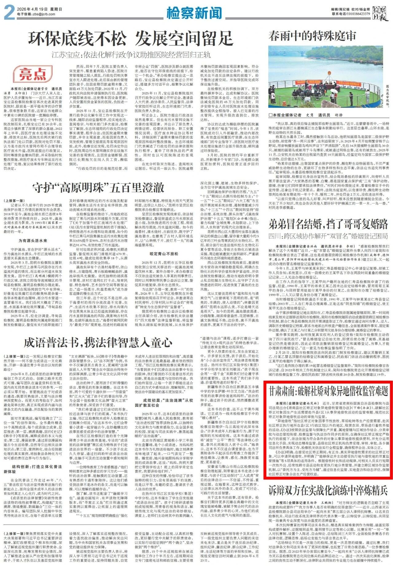 2026年4月19日,检察日报刊发《甘肃肃南:破解社矫对象异地借牧监管难题》。